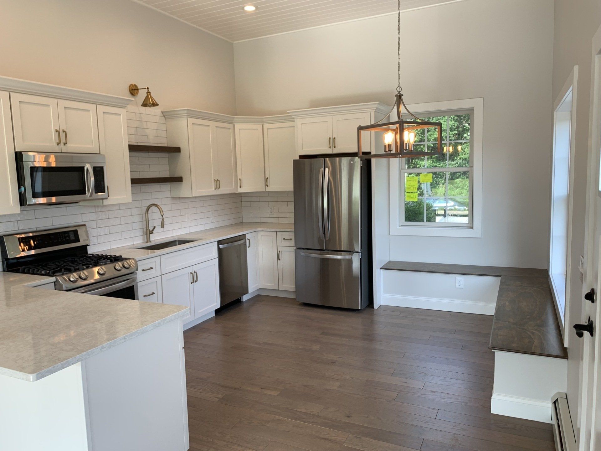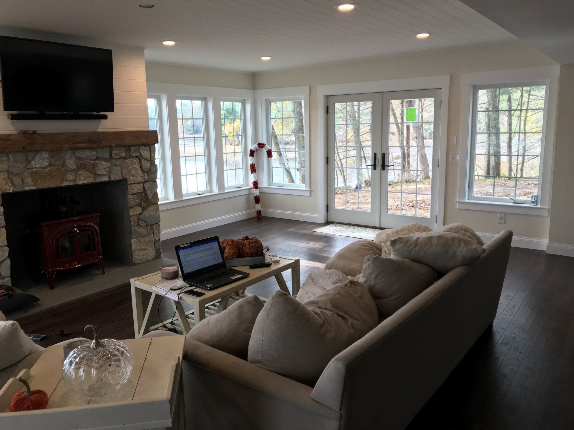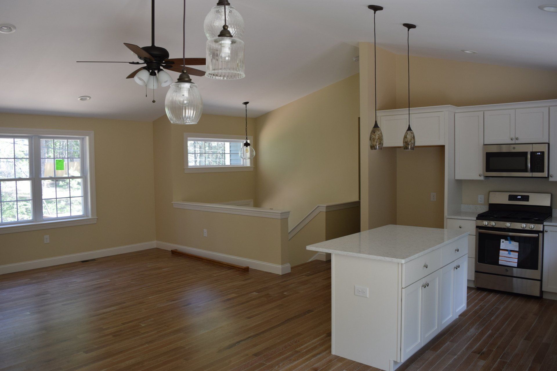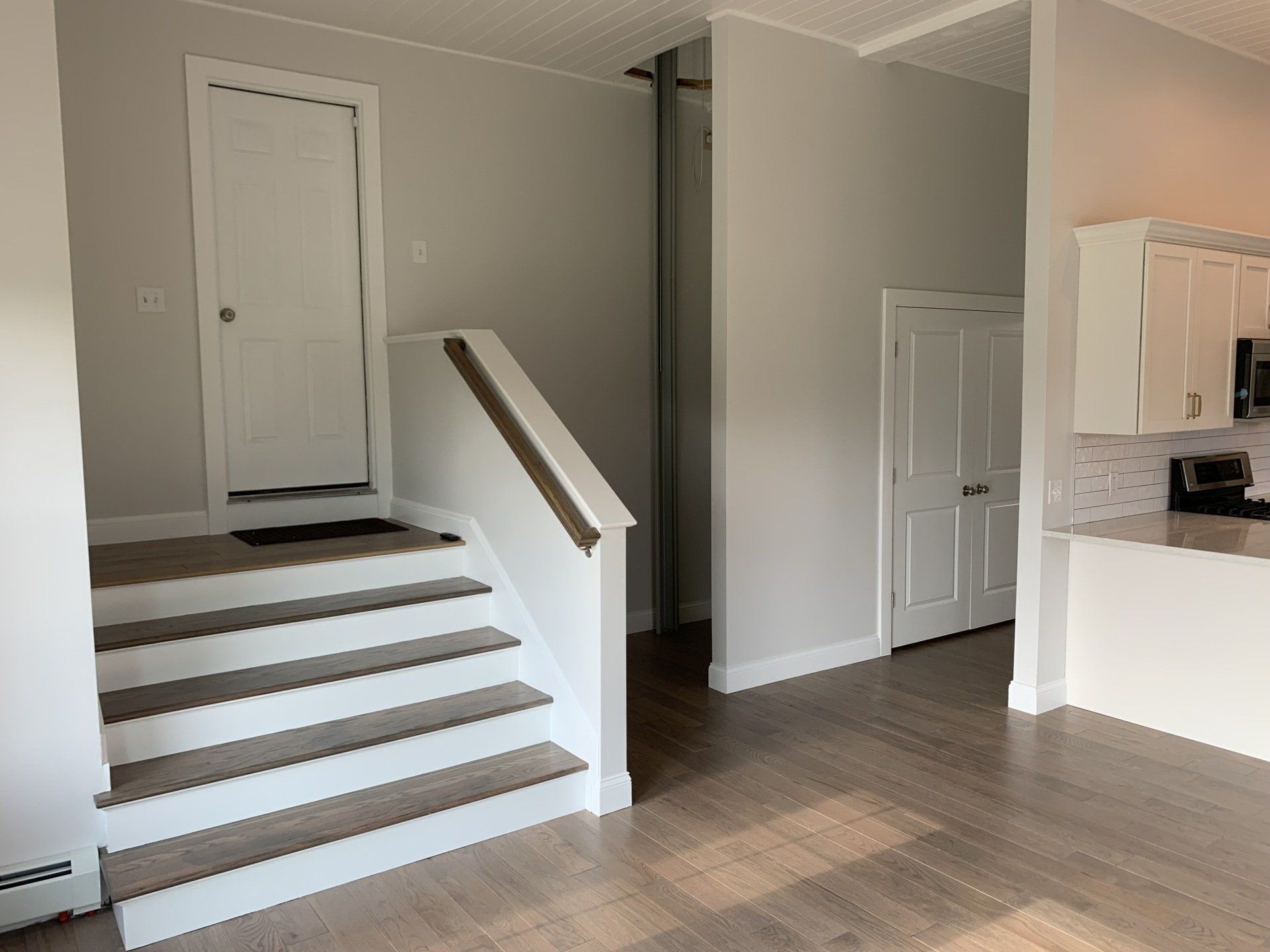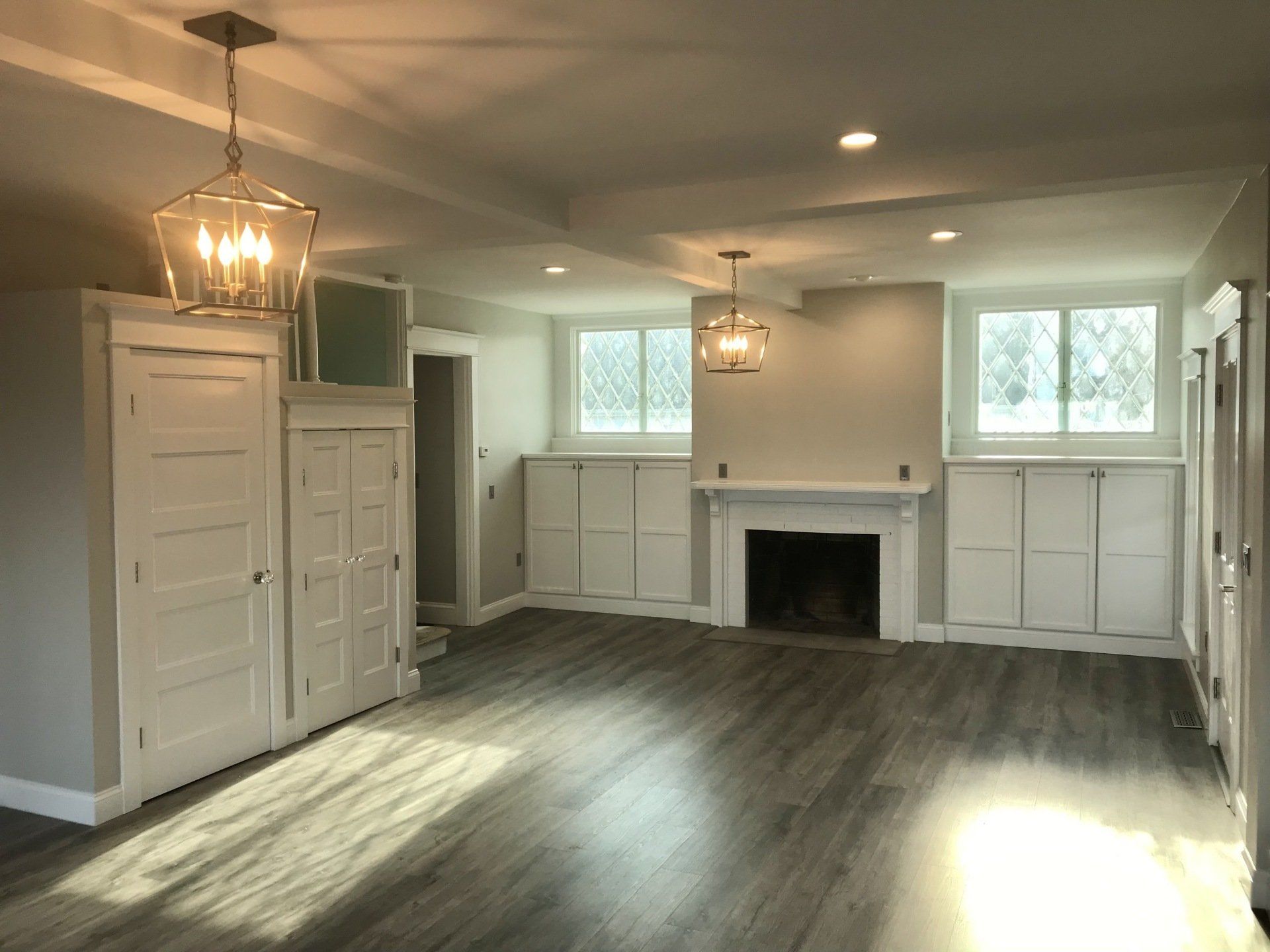 Beautiful, bright, and modern addition to a home in Burrilliville where we turned an existing garage into an in-law apartment complete with a kitchen, bathroom, fireplace, hardwood floors, and even an elevator.